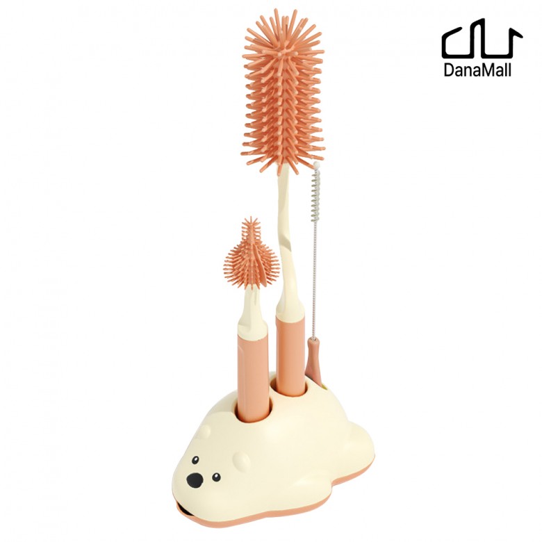 다나몰 회전형 젖병솔 + 젖꼭지솔 + 빨대솔 3종 + 거치대 > 출산/육아